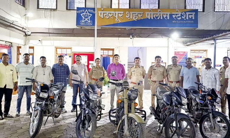 पंढरपुर शहरातुन मोटार सायकल चोरी करणाऱ्या चोराकडुन पाच मोटार सायकली जप्त.