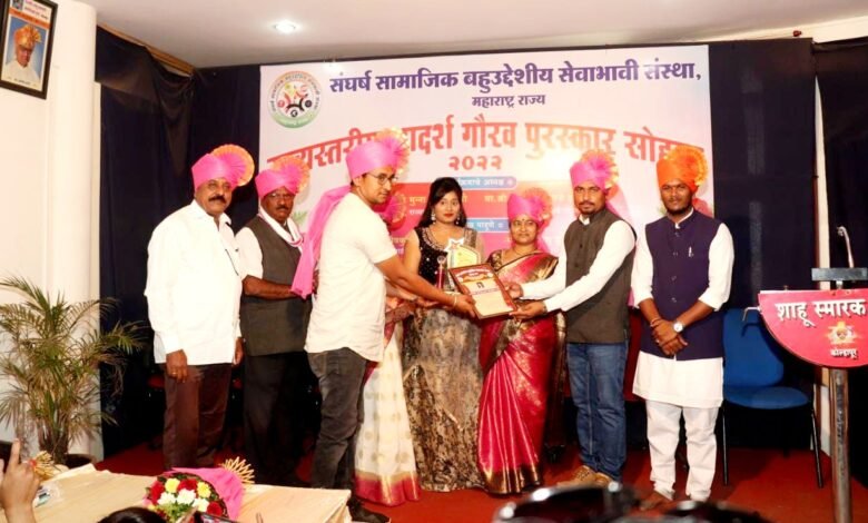 पंढरपूर:-संघर्ष सामाजिक बहुउद्देशीय सेवाभावी संस्था महाराष्ट्र राज्य.राज्यस्तरीय आदर्श गौरव पुरस्कार २०२२ या पुरस्कार पंढरपूरचे युवा पत्रकार लखन साळुंखे यांन जाहीर  झाला होता .  त्याचे   वितरण शाहू स्मारक भवन ,दसरा चौक कोल्हापूर या ठिकाणी करण्यात आले. हा  पुरस्कार धनंजय उर्फ मुन्ना महाडिक. संसद रत्न खासदार राज्यसभा दिल्ली. आणि श्री भूषणसिंह राजे होळकरसो,  व मान्यवरांचे  हस्ते  पंढरपूरचे युवा पत्रकार लखन साळुंखे यांना  सन्मानचिन्ह ,प्रशस्तीपत्र देऊन गौरवण्यात आले.