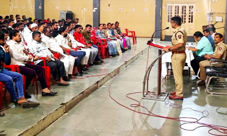यावेळी सहा. पोलीस अधीक्षक श्री.डगळे म्हणाले, नागरिकांना ध्वनीप्रदुषणाचा त्रास होवू नये यासाठी डीजेचा वापर न करता पारंपारिक वाद्यांचा वापर करावा. लेजर शोचा वापर टाळावा.पर्यावरण पूरक गणेश मूर्तीची स्थापना करावी. गणेशोत्सवासाठी उभारण्यात येणाऱ्या मंडपाचा रहदारीस अडथळा निर्माण होणार नाही याची दक्षता घ्यावी. मंडळांनी विविध सामाजिक उपक्रम राबवावेत. महिला, वृद्ध व बालके यांच्या सुरक्षेसाठी आवश्यक उपयोजना कराव्यात .गणेश विसर्जनाच्या मिरवणुकांसाठी जे मार्ग तसेच विसर्जनाची जागा निश्चित केले आहेत त्या ठिकाणी विसर्जन करावे तसेच मिरवणुकीसाठी दिलेल्या वेळेची मर्यादा पाळावी.