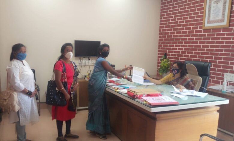 पुरोगामी संघर्ष परिषदेच्या वतीने उपजिल्हाधिकारी मौसमी बर्डे याना निवेदन देताना पश्चिम महाराष्ट्र अध्यक्षा सौ.स्वाती सौंदडे,जिल्हाध्यक्षा कु.नयना लोंढे,मयूरी कांबळे इ.