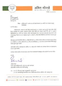 साठे महामंडळाचे माजी अध्यक्ष तथा भाजपा प्रदेश सचिव अमित गोरखे यांचे मुख्यमंत्री,उपमुख्यमंत्री यांना पत्र