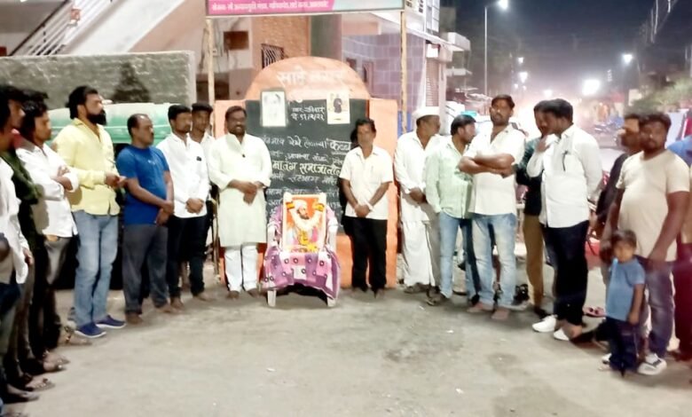 अक्कलकोट:- आण्णाभाऊ साठे नगर माणिक पेठ अक्कलकोट येथे फकीरा दल व मातंग समाज कडून कुळवाडी बहुजन प्रतिपालक छत्रपती शिवाजी महाराज यांची जयंती निमित्त मातंग समाजाचे अध्यक्ष निवृत्ती पारखे आरपीआय तालुकाध्यक्ष अविनाश मढीखांबे यांच्या शुभहस्ते प्रतिमेस पुष्पहार अर्पण करण्यात आला.याप्रसंगी मनसे संघटक देवेंद्र शिंदे, वंचित शहराध्यक्ष विशाल ठोंबरे यांनी आपले विचार व्यक्त केले. यावेळी भावी नगरसेवक किसन भाऊ जाधव, नागेश भाऊ जाधव मित्र मंडळ,सुरेश पारखे, भानुदास महाराज देडे, वंचित शहर महासचिव भारत देडे, आरपीआय शहराध्यक्ष सुरेश सोनकांबळे,आरपीआय संघटक अंबादास शिंदे, बालाजी पारखे,रवी सोनकांबळे,स्वामी कोळी, सिद्धार्थ वरवटे,छोटू जाधव, सोनू देडे,यल्लाप्पा देडे नितीन पारखे संजय कामनळी सागर देडे आदि समाज बांधव उपस्थित होते. कार्यक्रमाचे सूत्रसंचालन व आभार ज्योतिबा (जय भाऊ) पारखे यांनी मानले.