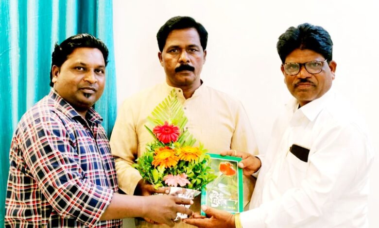 पुरोगामी संघर्ष परिषदेचे राष्ट्रीय संस्थापक अध्यक्ष प्रा. सुभाष वायदंडे यांना “काटेरी गुलाब” हे पुस्तक देऊन सत्कार करताना ज्येष्ठ साहित्यिक व कवी प्रा. निवांत कवळे व शंकर अंबवडे
