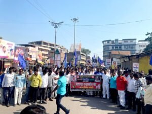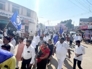 महात्मा ज्योतिबा फुले पुतळ्यासमोर पुष्पहार अर्पण करून मोर्चास सुरुवात झाली.