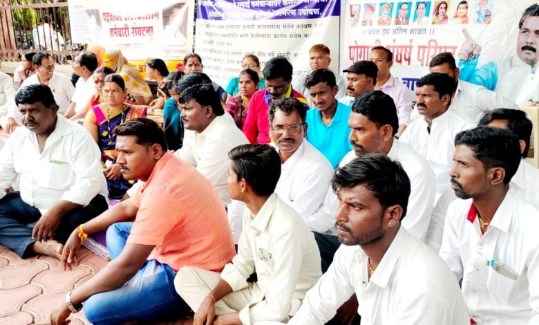 सोलापूर:- बँक ऑफ महाराष्ट्र मधील सफाई कामगारांना वीस वर्षे सेवा करूनही तोंडी आदेश देऊन निलंबित केले प्रकरणी व काही हंगामी कामगारांना गुलामासारखी वागणूक देऊन सकाळी आठ ते रात्री आठ वेठ बिगारासारखे काम लावत असल्यामुळे, आणि कमी केलेल्या कामगारांच्या ठिकाणी स्वतःच्या नातेवाईकांची काही बँक अधिकाऱ्यांनी भरती करून भ्रष्टाचार केल्यामुळे व पाठीमागून भरती करून सदर कामगारांना कायमसवेत घेतल्याप्रकरणी बँक ऑफ महाराष्ट्र मधील भ्रष्टाचारी अधिकाऱ्यांच्यावर ॲट्रॉसिटी ॲक्टचा गुन्हा दाखल करून त्यांची खाते निहाय चौकशी व इतर मागण्यासाठी पुरोगामी संघर्ष परिषद सोलापूर जिल्ह्याच्या वतीने सोलापूरच्या पूनम गेटवर बेमुदत धरणे आंदोलन चालू असून पुरोगामी संघर्ष परिषदेचे राष्ट्रीय संस्थापक अध्यक्ष संघर्ष नायक प्रा. सुभाष वायदंडे यांनी सहाव्या दिवशी भेट दिली असता बँकेचा एकही अधिकारी तिकडे फिरकला नसल्यामुळे प्रा. वायदंडे भडकले आणि आंदोलनाची व्याप्ती आणि तीव्रता वाढवण्याचे आदेश दिले जोपर्यंत न्याय मिळत नाही तोपर्यंत आंदोलन सुरू ठेवा वेळप्रसंगी आमरण उपोषण करण्याचे आदेश ही यावेळी प्रा. सुभाष वायदंडे यांनी दिले असून ते आंदोलक व कार्यकर्त्यांना घेऊन थेट जिल्हाधिकारी कार्यालयात गेले असता जिल्हाधिकाऱ्यांनी थेट लेखी पत्र काढून बँक कर्मचाऱ्यांकडून अहवाल मागविला असून पुरोगामी संघर्ष परिषदेचे आंदोलन निर्णायक वळणावर येणार असल्याचे समजते.