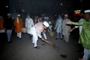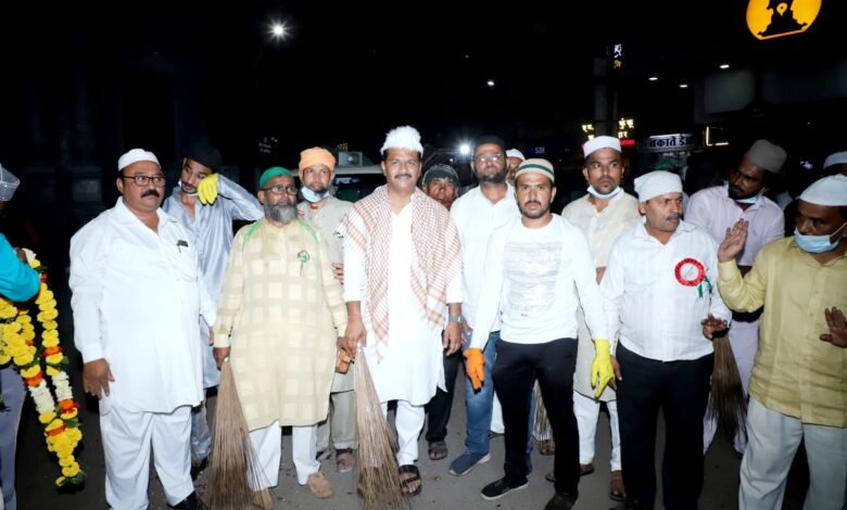 मोठ्या थाटामाटात निघालेल्या जुलूसामध्ये अभिजीत पाटील यांनी सहभाग नोंदवून केली साफसफाई..