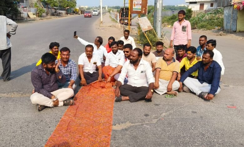 महर्षी वाल्मिकी संघाने चक्क रस्त्यावरील खड्ड्यांना घातला फेट्यांचा आहेर!!