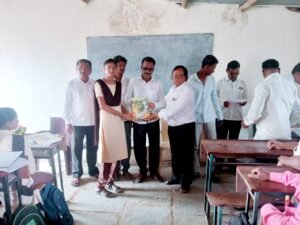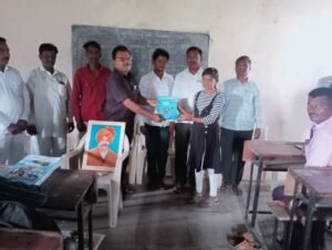 प्रबुद्ध परिवाराचे मार्गदर्शक सुनील वाघमारे व मुख्याध्यापक बिभीषण साळुंखे यांचे हस्ते 9 वी चे विध्यार्थ्यांना पुस्तकं वाटप